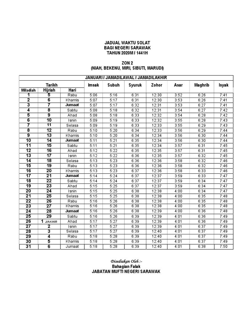 Waktu solat sarawak tahunan untuk tahun 2022 1443H 1444H untuk waktu imsak subuh syuruk zohor maghrib isyak waktu berbuka puasa sarawak. Jadual Waktu Solat Tahun 2021 Zon Khas Kg.